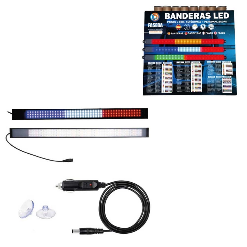 Fabricado en España con perfil de aluminio y tiras rígidas de LED de máxima calidad. Incluye regulador de intensidad luminosa con memoria de posición (ON/OFF + 33/66/99%). Viene con 2 ventosas, cable de 150 cm y toma a mechero de 12V/24V. No resistente al agua. ¡Llévate un expositor gratis con la compra de 10 unidades!