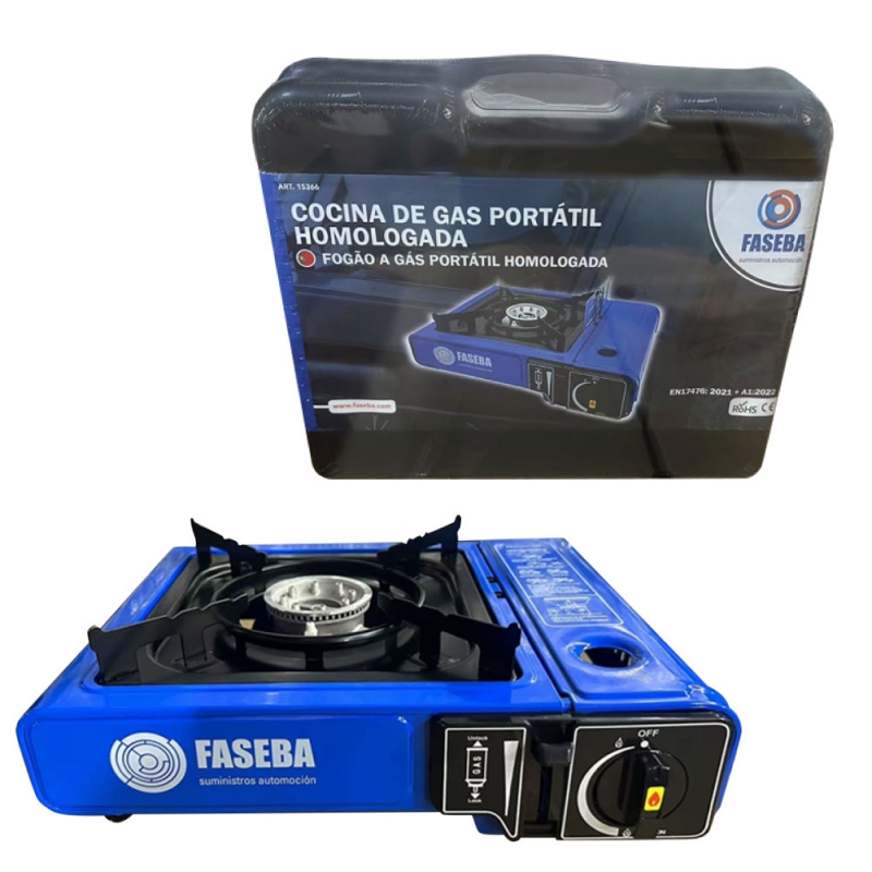Robusta y confiable, esta cocina portátil de gas Faseba cuenta con homologación oficial, garantizando seguridad y calidad. Ideal para camping, emergencias o uso al aire libre.
