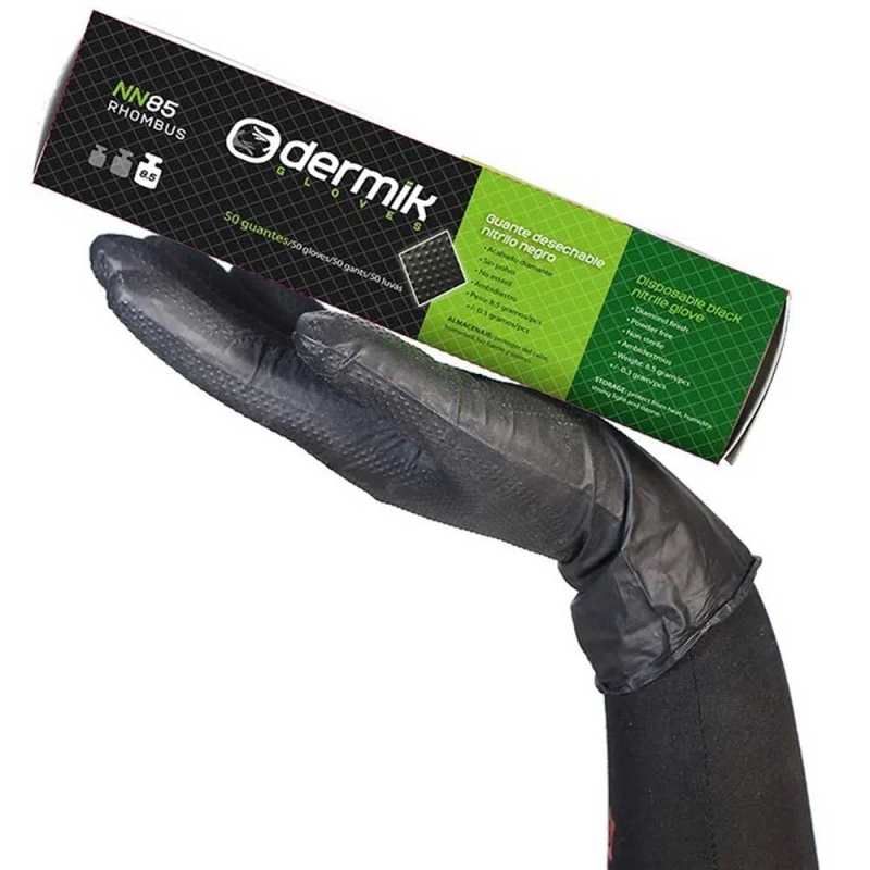GUANTE FASEBA DESHECHABLE NITRILO NEGRO DIAMANTADO (DISPENSADOR 100 UNIDADES)