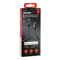 Cable de carga y transferencia de datos con conector USB Tipo C a Lightning, ideal para dispositivos Apple como iPhone, iPad y iPod. Compatible con carga rápida (según el adaptador usado), y con una longitud de 200 cm que brinda mayor comodidad. Diseño resistente y elegante en color negro.