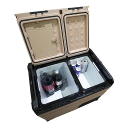 La Alpicool de 45,6L es una nevera portátil de alto rendimiento con compresor real, ideal para viajes, camping o uso profesional. Funciona con 12/24V (vehículo) y 220V (enchufe doméstico), alcanzando hasta -20°C. Incluye control digital, conectividad Bluetooth para gestionar la temperatura desde el móvil y puerto USB para cargar dispositivos. Su diseño robusto con asas reforzadas, con doble tapa y portavasos integrados la hacen práctica para cualquier aventura.