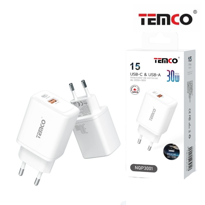 CARGADOR DE RED CON 2 PUERTOS USB (A 18W+C 30W) 3A CARGA RAPIDA 220/240V BLANCO