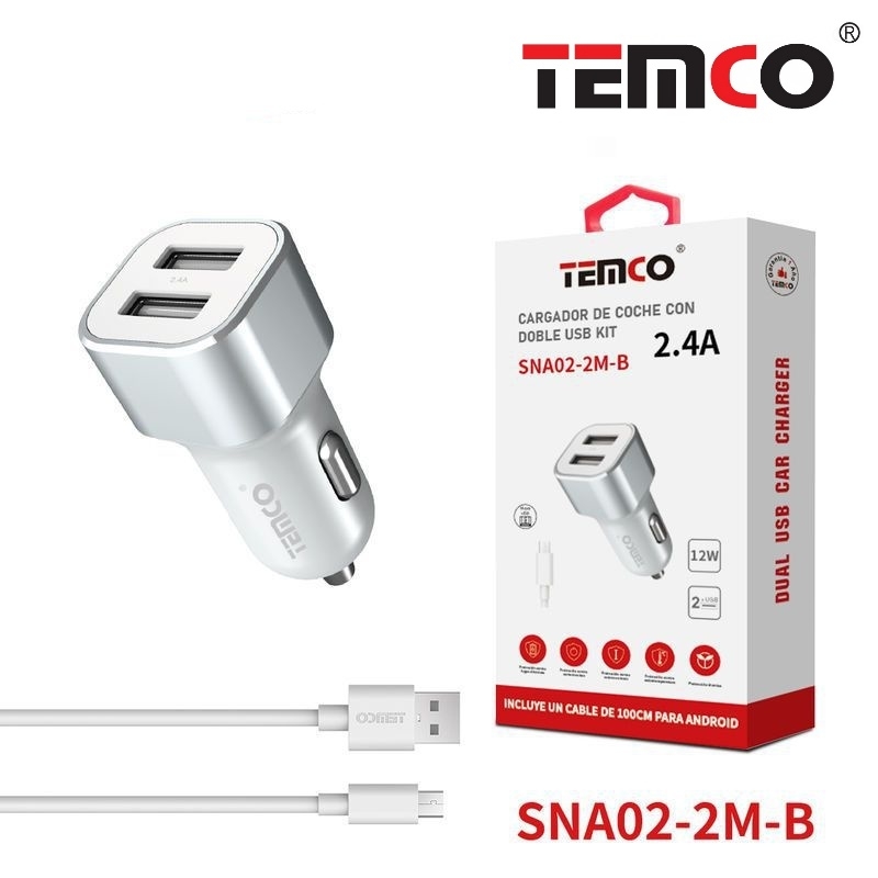 CARGADOR DOBLE USB 12/24 2,4A CON CABLE USB A MICRO USB 1M 2A BLANCO
