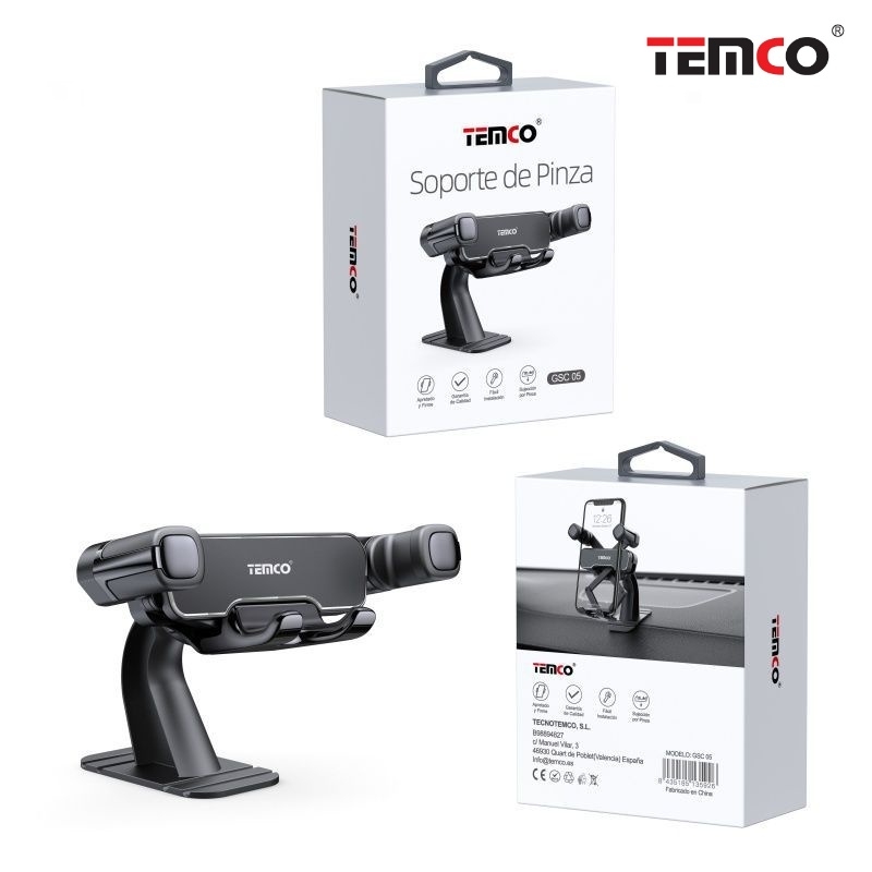 SOPORTE DE PINZA PARA TELEFONO CON BASE ADHESIVA NEGRO