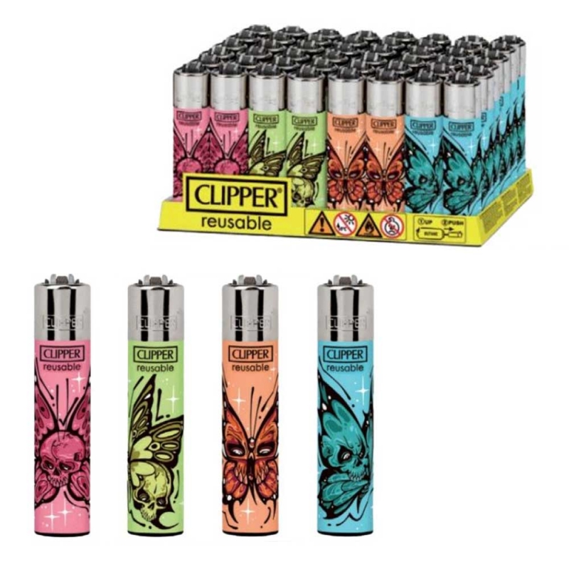 MECHEROS CLIPPER DECORADOS DIABOLICAL BUTTERFLIES (PEDIDO MIN MULTIPLO 48 UDS)