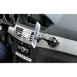 Diseño compacto con ajuste de ángulo visual. Sistema PTL: bloqueo a presión. Inserciones de goma antideslizante y antiarañazos. Entrada rápida y extracción del teléfono / teléfono inteligente. Compatible con dispositivos de 60 a 80 mm de ancho. Almohadilla de succión adhesiva para un agarre óptimo en parabrisas y tableros