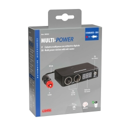 Doble enchufe multivoltaje, máx. 12 A, también adecuado para enchufes de encendedor de cigarrillos.