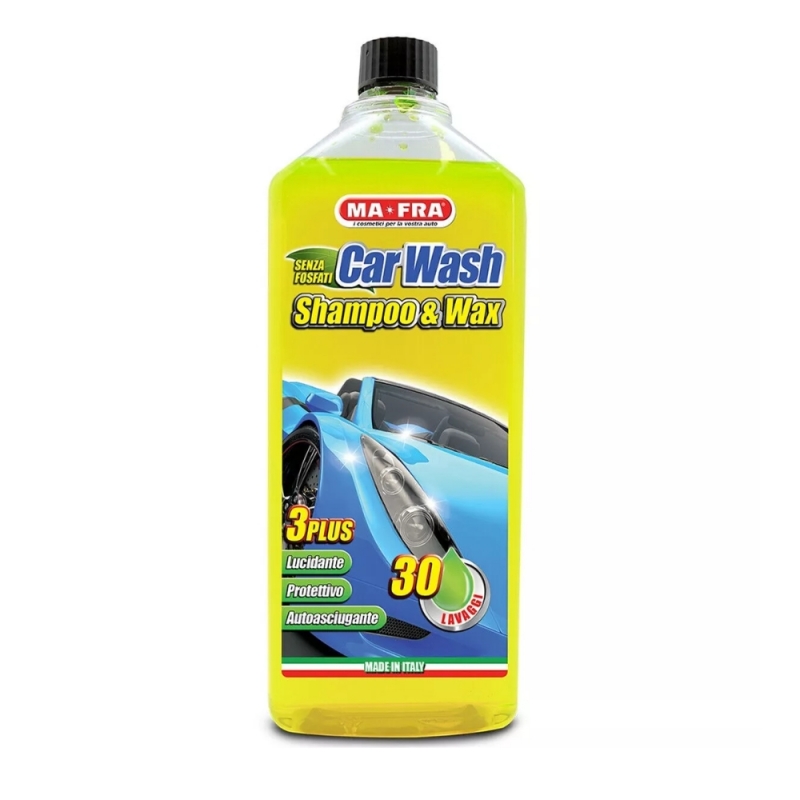 • Se lava y pule de una sola vez. • Contiene ceras vegetales de alto agarre. • Mantiene los colores originales brillantes con el tiempo. • Fórmula concentrada: un paquete es suficiente para 25 lavados. • Crea un efecto “seda” para la carrocería.
