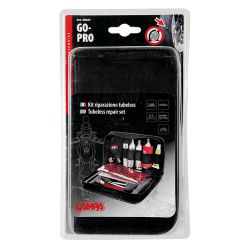 CONTENIDO:Punzón para limpiar y agrandar el pinchazo a reparar,Punzón para introducir las bandas de reparación en el pinchazo,Bandas de goma (5 unidades),Masilla de 6 g,Cúter,Regulador de presión,Alargo flexible,Adaptador para válvulas bicicleta,Recarga de 16 g (3 unidades),