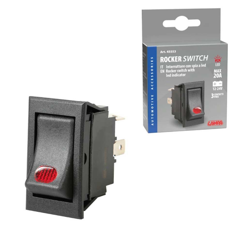 INTERRUPTOR DE PALANCA 3 TERMINALES 12/24V 20A ROJO