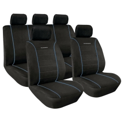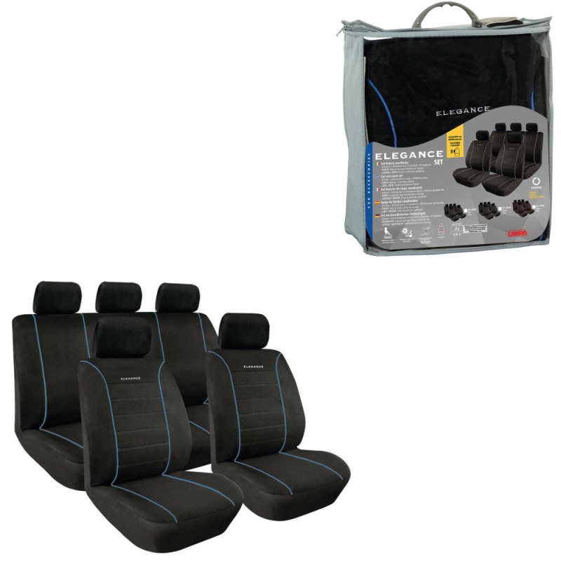 Front: Velvet and polyester fabric. Lateral / Retro: Polyester Fabric • Universal • Compatible with seats supplied with side airbags • Light-proof colors • Soft filling • Rent cover included • Front seats with Velcro closure • Backup and rear seat Divisible (3 + 3 hinges). Removable central part for a higher adaptability of the seat