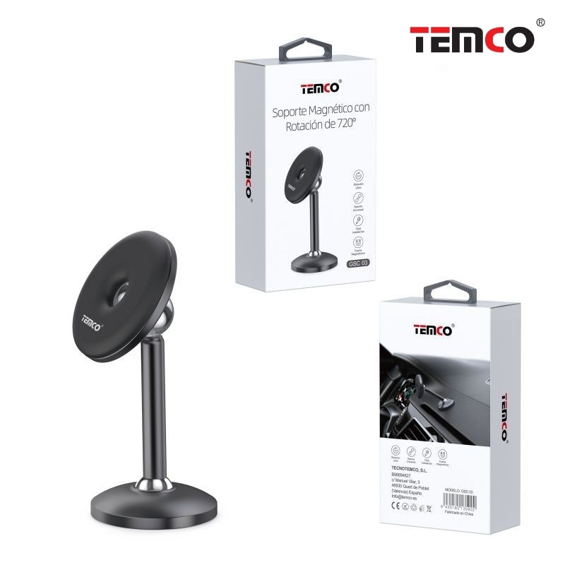Magnetic support for adhesive-based telephone and 720º black rotation