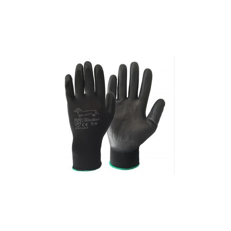 Seamless glove, Polyester support, PU coating.