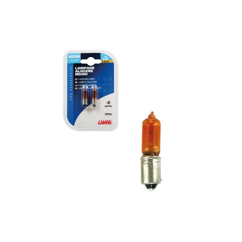 12V Micro Halogen Lamp - HY21W - 21W - Bay9S - 2 UDS - D / Blister - Orange