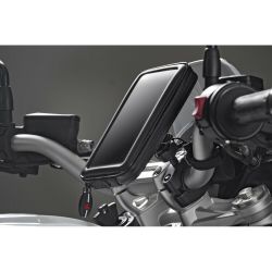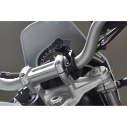 For handlebars with diameter between 22 - 32 mm.The rubber ball allows to reduce blows and vibraciones.Espaciador rubber precortado.Sistema Adjustable fixing for the best viewing anglen.Estructura of high-pressure metal resistencia.Compatible With all the Opti cases Line.Sistema Fixing / Quick Release Duolock.