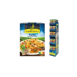 Vegetable paella dish and chicken trolley