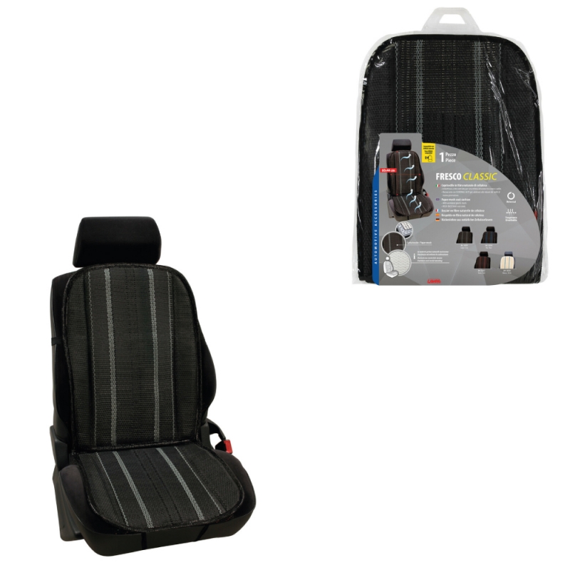 Stuffing springs for excellent ventilation. Universal, also suitable for vehicles with the airbag incorporated in the seat. • Universal for most standard seats • Compatible with seats equipped with side airbags • Fan fabric structure