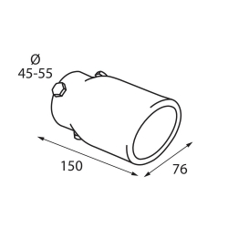 Échappement en acier inoxydable poli. Diamètre: 45-55 mm Hauteur: 310 mm Longueur: 155 mm Profondeur: 85 mm
