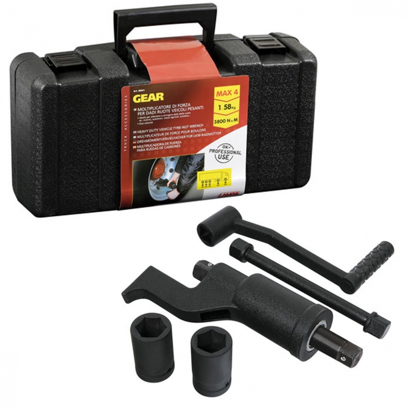 Idéal pour desserrer ou resserrer les écrous de roue / boulons de tracteur, camions, véhicules agricoles, bus. Double vitesse .relation 1:56 (1 kg = 56 kg) Kit complet: 1 courbe de manivelle 1 extension 210 mm 1 boussole 32 mm 1 boussole 33 mm manchon de connexion: 1 "(25,4 mm)