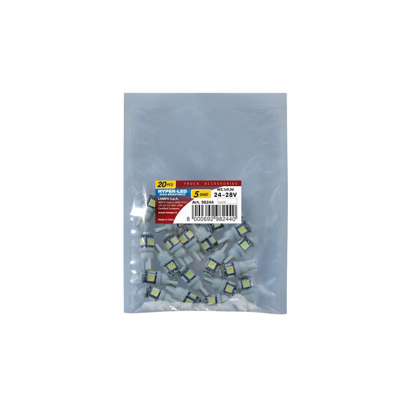 Lampa T10 Hyper LED WHITE 24 / 28V 5SMD 3 puce W21X9.5D (sac 20 unités)