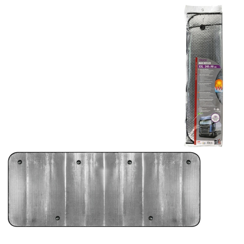 Avec des milliers de bulles d'air et une double feuille de chrome réfléchissante. Il reflète 100% des rayons du soleil en réduisant la température de la cabine. Produit avec la dernière génération, avec des matériaux athériques. Il est placé en quelques secondes à l'intérieur du pare-brise avec 6 ventouses