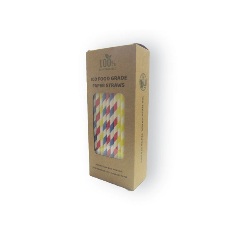 Paille biodégradable de couleurs assorties de carton x100 UDS