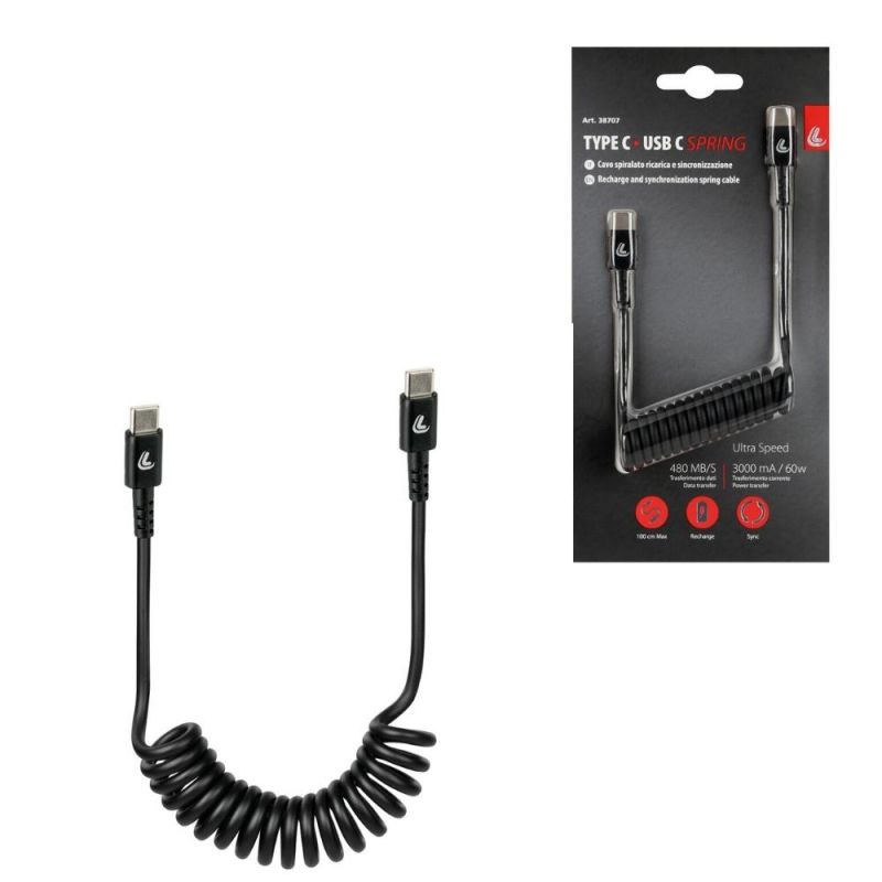 Le câble de synchronisation de recharge et de synchronisation de voiture spécifique s'étend lorsqu'il est utilisé et retourne à sa forme d'origine lorsqu'il n'est pas utilisé avec tous les appareils avec port USB de type C