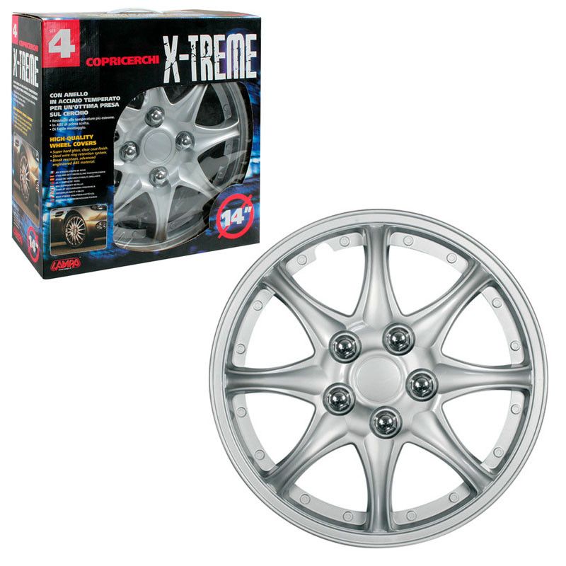 Ensemble de 4 moulures à roue de 4 "x-treme" en ABS, peinture à deux couches brillante métallisée avec des vis chromées. Facile à assembler avec anneau en acier tempéré