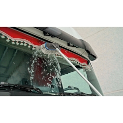 Brosse à grand angle pour une plus grande surface de contact. Protection des chocs et anti-grossières dans le caoutchouc souple. Poignée en aluminium (Ø 30 mm), télescopique (140-240 cm). Connexion de la vis en métal. Prise en caoutchouc. Interrupteur à débit et couplage rapide.