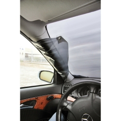 Evite raspar do pára-brisa em caso de gelo e neve. É rapidamente colocado e fixado fechando as duas barbatanas do lado entre a vertical e as portas. As duas ventosas facilitam a fixação, antes de fechar as portas.