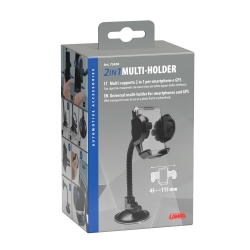 Acordado indentremente em Pourelle. Adequado para uso com cabo de alimentação ou fones de ouvido conectados à unidade. Função de liberação automática pressionando o botão. Fixação por clipes para bicos de ventilação ou ventosas para âncora em superfícies lisas. Braço flexível de 18,5 cm. Base adesiva incluída. Extensível para manter objetos de 45 a 115 mm