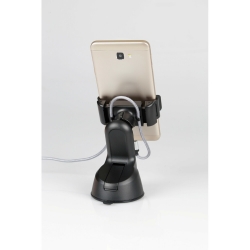 Design compacto com altura e ajuste de ângulo visual. Inserções de borracha antiderrapantes e anti-riscos. Entrada rápida e extração de telefone / smartphone. Compatível com dispositivos de 55 mm a 80 mm de largura. Almofada de sucção adesiva para aperto ideal em pára-brisa e placas. Ganchos organizador de alívio de tensão na parte de trás do suporte do telefone