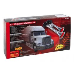 Som combinado, 125 dB. Montagem sob o capô. Composto por: 2 Mídia de aparência cromada 23 + 30 cm com válvula solenóide e acessórios de montagem. Também é adequado para uso externo, fácil de instalar.