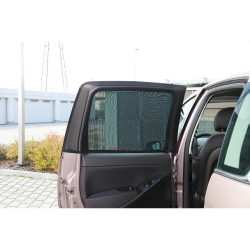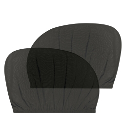 100% de poliéster de camada dupla. Duas funções: guarda-chuva, para proteger o interior e os passageiros do sol, sem bloquear a visibilidade para o exterior; Rede de insetos, para evitar que os insetos entrem mesmo com cristais baixos. Pode ser usado nas janelas laterais traseiras, mesmo quando o carro estiver se movendo. Não dificulta a subida e declínio do cristal. Dobrado em si mesmos, ocupam pouco espaço.