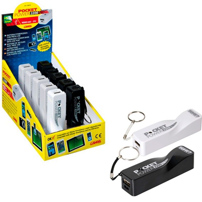 Bateria de emergência com conexão USB. Fornecer e pronto para uso. Capacidade de saída: 2200-1000 Ma-5V. Variedade em preto e branco.